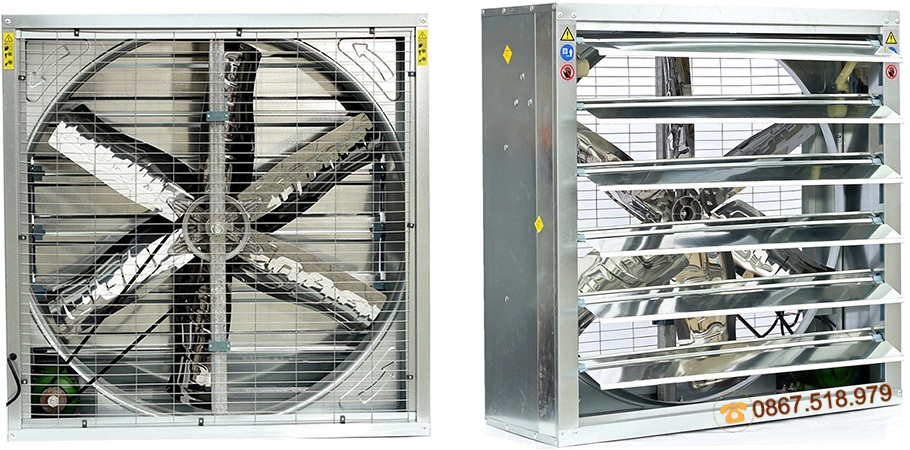- Quạt thông gió, Quạt thông gió 1060x1060 motor trực tiếp được lắp đặt bên ngoài phân xưởng giúp loại bỏ các khí nặng mùi. Quạt thường được sử dụng trong các nhà máy nhiệt luyện, nhà máy đúc, nhà máy nhựa, các công ty may mặc, nhà máy mạ điện, nhà máy hóa chất, v.v…
